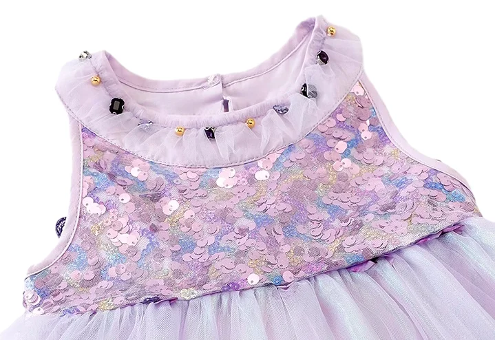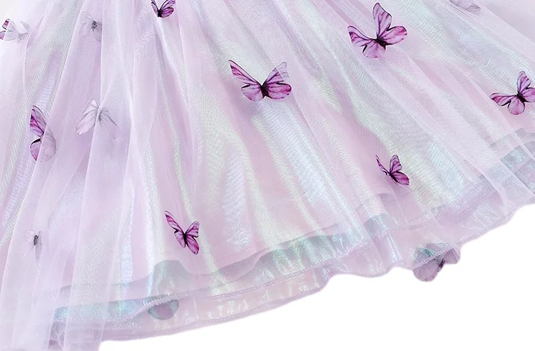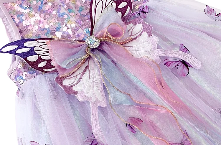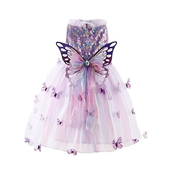 Customizable Summer New Design Purple Butterfly Cute Girls Dresses Sleeveless Tulle Sequin Princess Kids Dresses